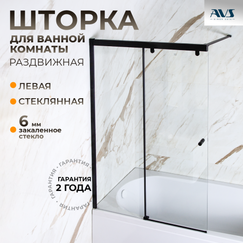 Шторка на ванну AVS Перла 100 L профиль черный матовый, стекло прозрачное